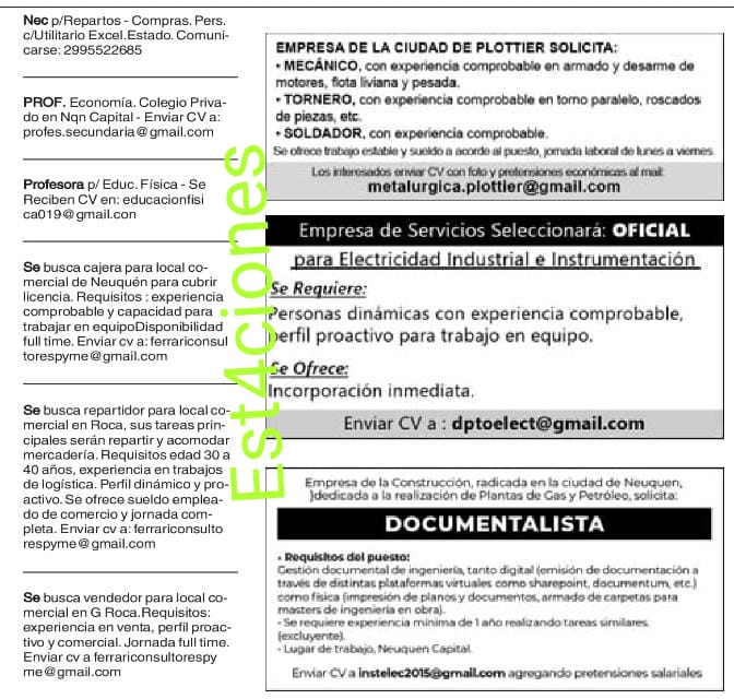 Clasificados 05/06. Enviar CV en PDF. Todos los rubros y profesiones.