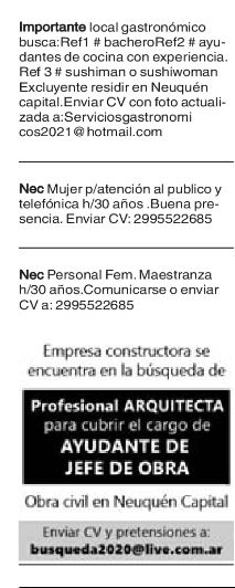 Clasificados 08/10. Envíar tu cv en PDF. Todos los rubros.