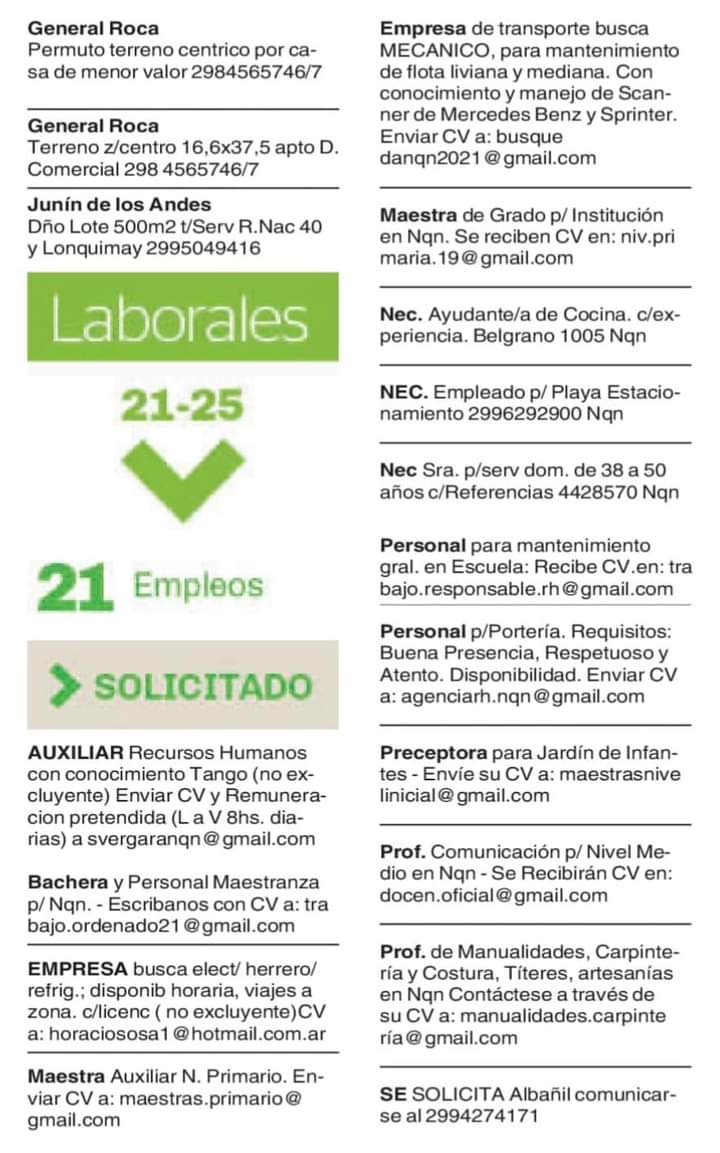 Clasificados 12/03. Petroleros. Choferes. Técnicos. Cajer@s. Adm. Salud. Educación. Limpieza, etc. Enviar CV en PDF.